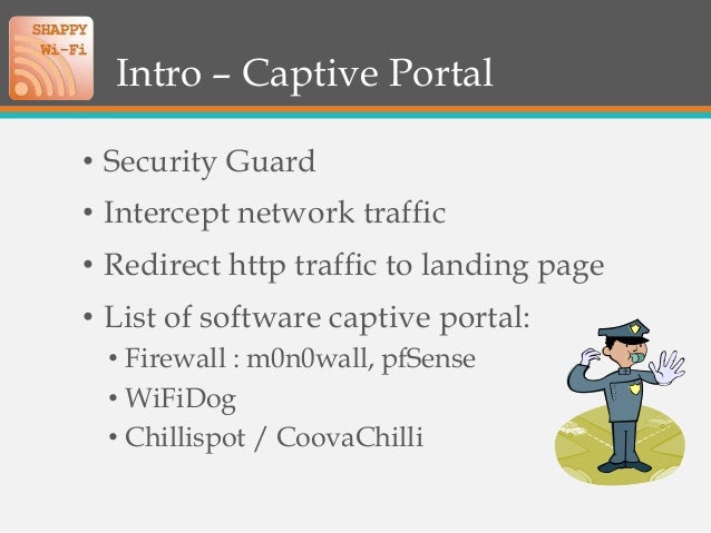 Secure WiFi Access in Captive Portal Hotspots and Co-Working Environments Flexible, A hotel chain can enable perks such as free WiFi to loyalty program members Captive Portal web server software, either built-in or external, which provides the portal ... View Doc