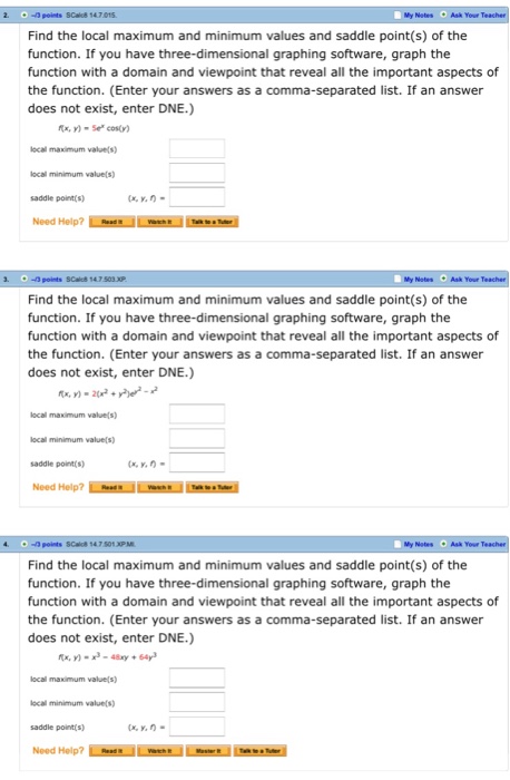 If you have three-dimensional graphing software, graph the function with a domain and viewpoint that reveal all the important aspects of the function. 6. f(x;y) = x3y+ 12x2 8y Solution: f(x;y) = x 3y+ 12x2 8y)f x = 3x2y+ 24x, f y = x 8, f xx = 6xy+ 24, f ... Access Content